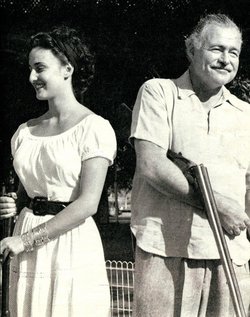 Ernest Hemingway and Adriana Ivancich with stuffed lion. Finca Vigia, San Francisco de Paula, Cuba. Copyright unknown in the Ernest Hemingway Collection at the John F. Kennedy Presidential Library and Museum, Boston.